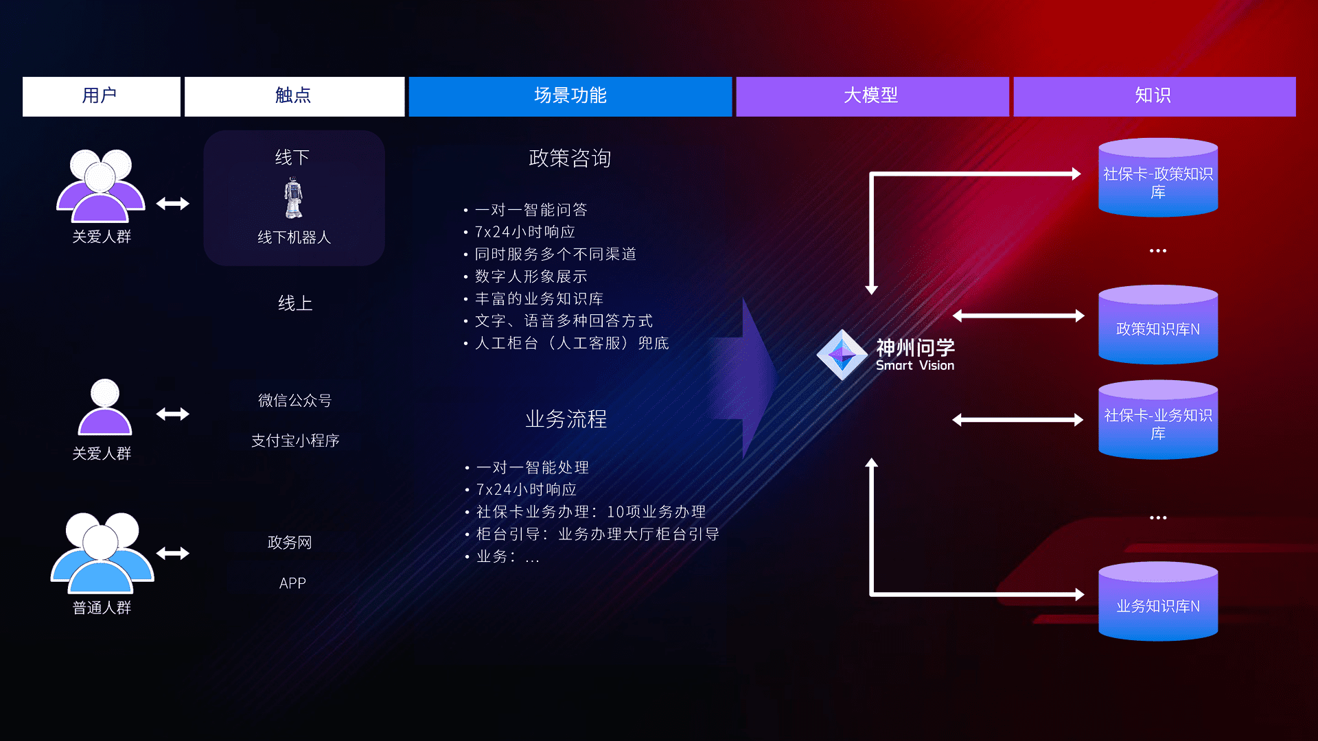 • 线上线下全覆盖:线上提供微信公众号、、、支付宝小程序、、政务网、、、app多种渠道,,,,与线下机器人形成完整服务体系。。。